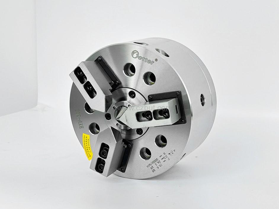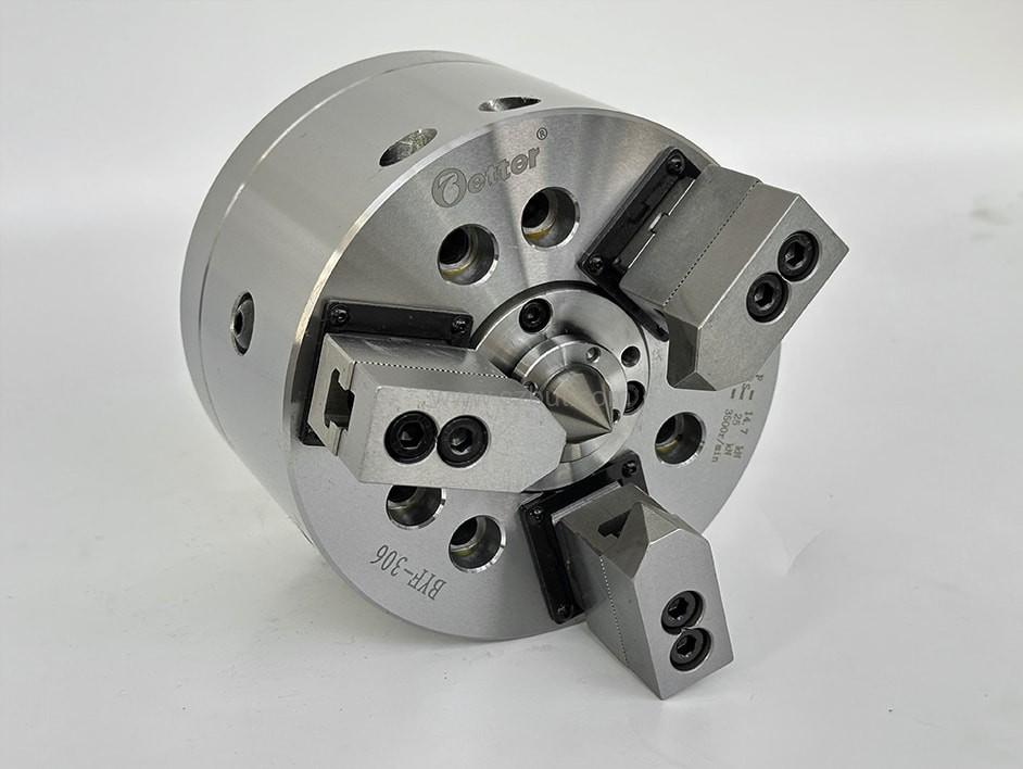 ? 軸類加工專用夾具,卡爪對工件具有后拉和補償式夾緊的功能,(該卡盤夾持力提供加工時的扭矩和后拉力),對中心的補償量為5mm