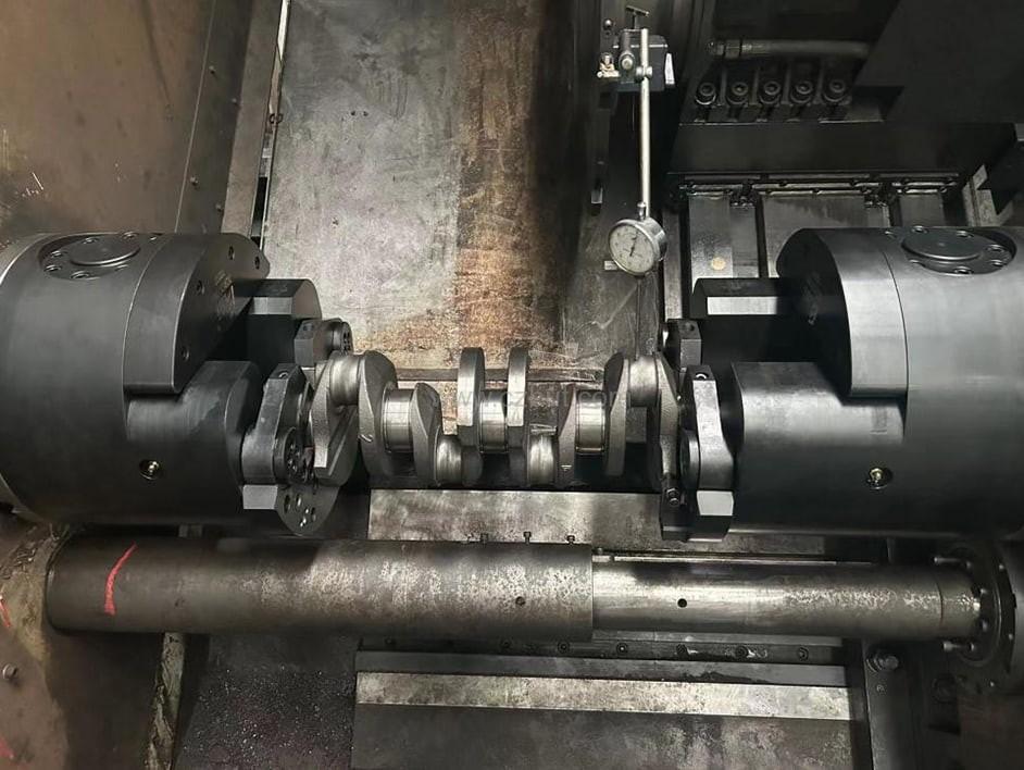 2. 以第一和第五主軸頸定心,第一連桿頸定角向,車削第三第六連桿頸,小頭端面定軸向
